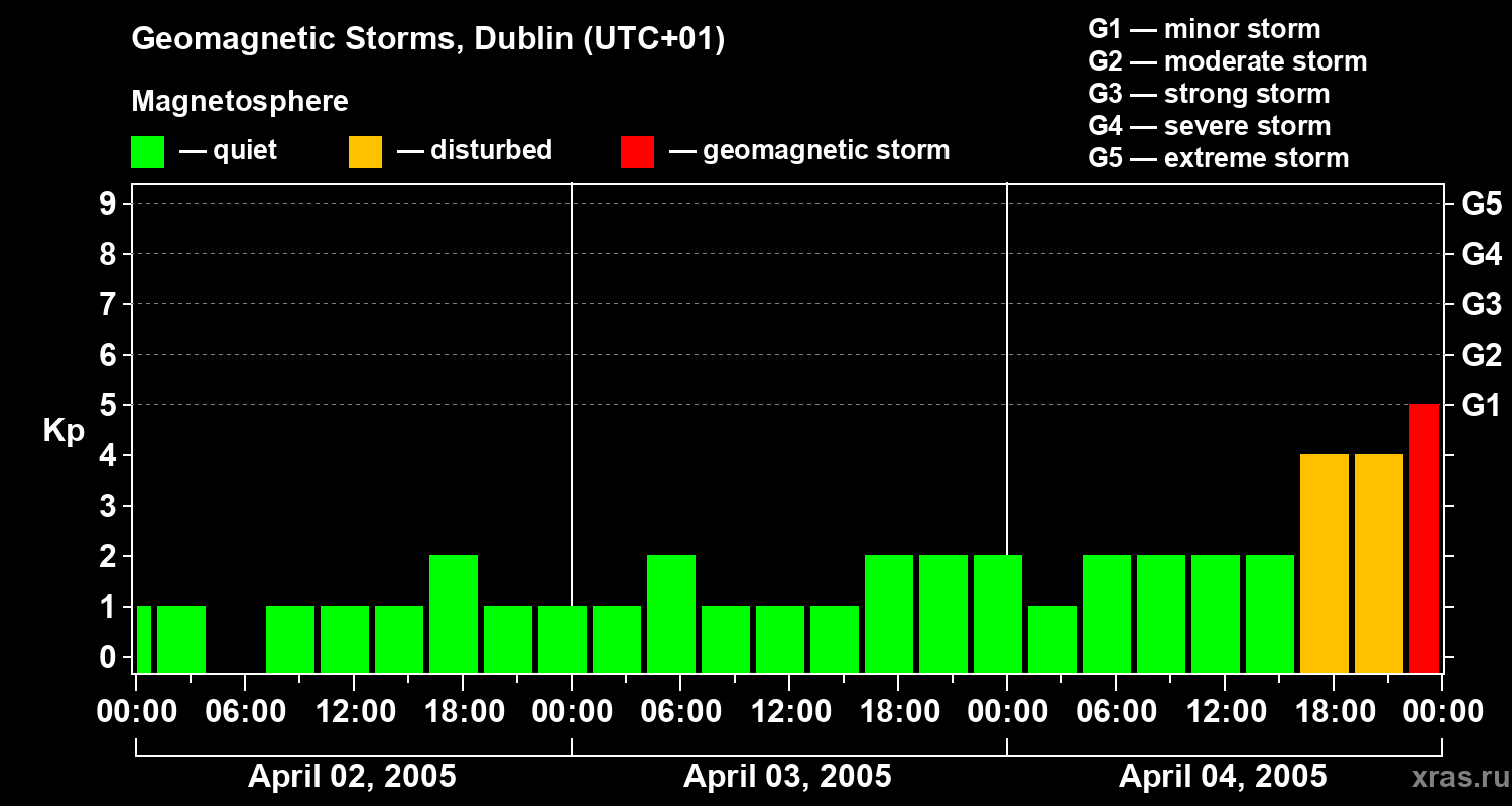 Geomagnetic storms in Dublin on Apr 04, 2005