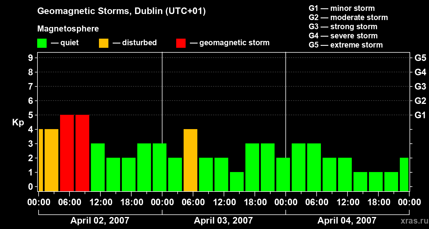 Geomagnetic storms in Dublin on Apr 04, 2007