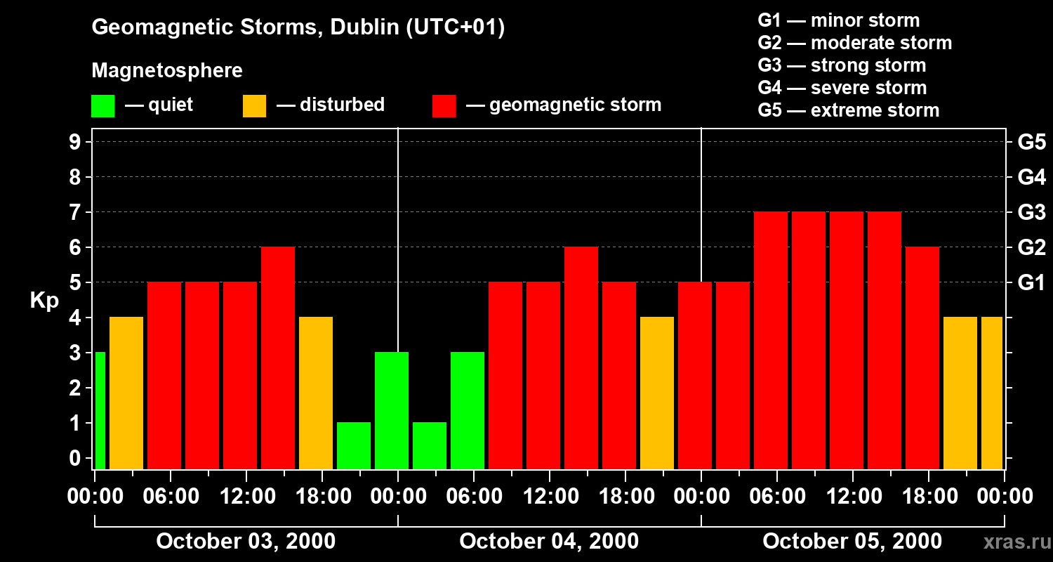 Geomagnetic storms in Dublin on Oct 05, 2000