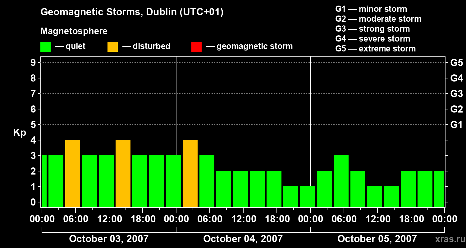 Geomagnetic storms in Dublin on Oct 05, 2007