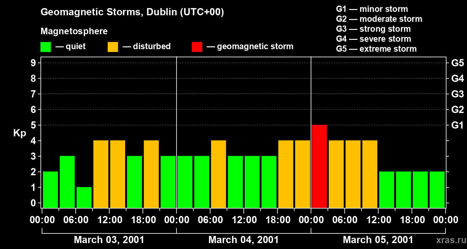 Geomagnetic storms in Dublin on Mar 05, 2001