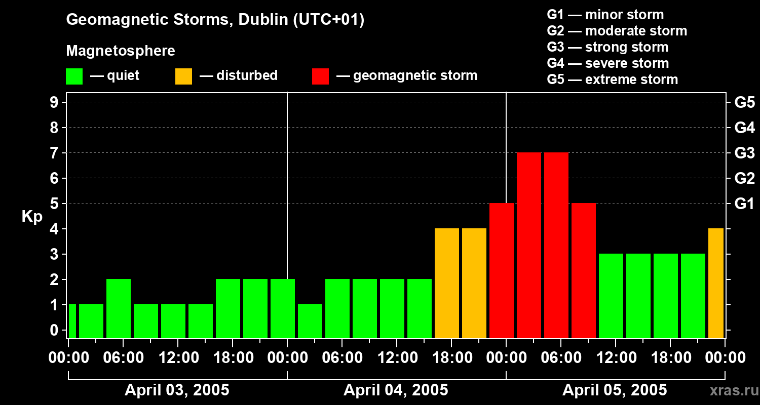 Geomagnetic storms in Dublin on Apr 05, 2005