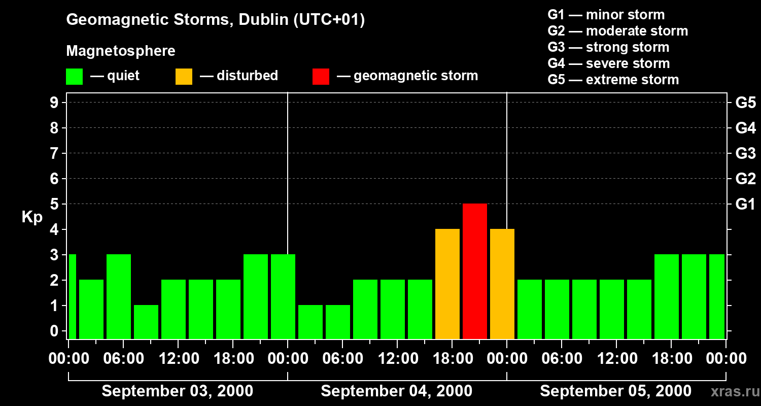 Geomagnetic storms in Dublin on Sep 05, 2000