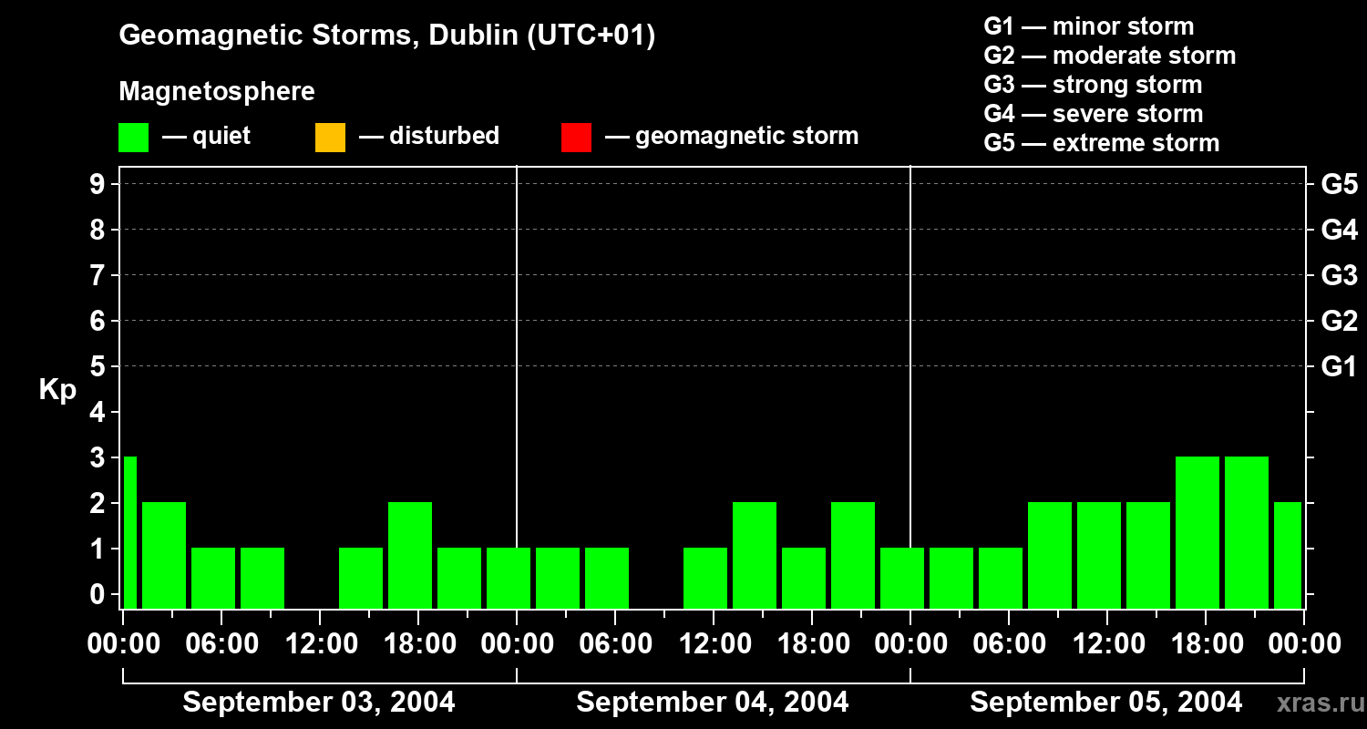 Geomagnetic storms in Dublin on Sep 05, 2004