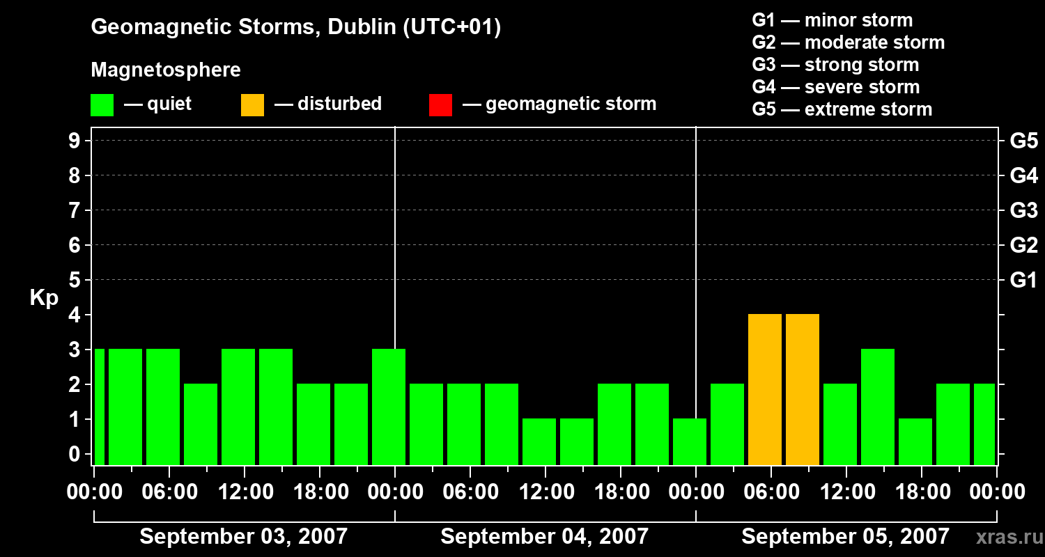 Geomagnetic storms in Dublin on Sep 05, 2007