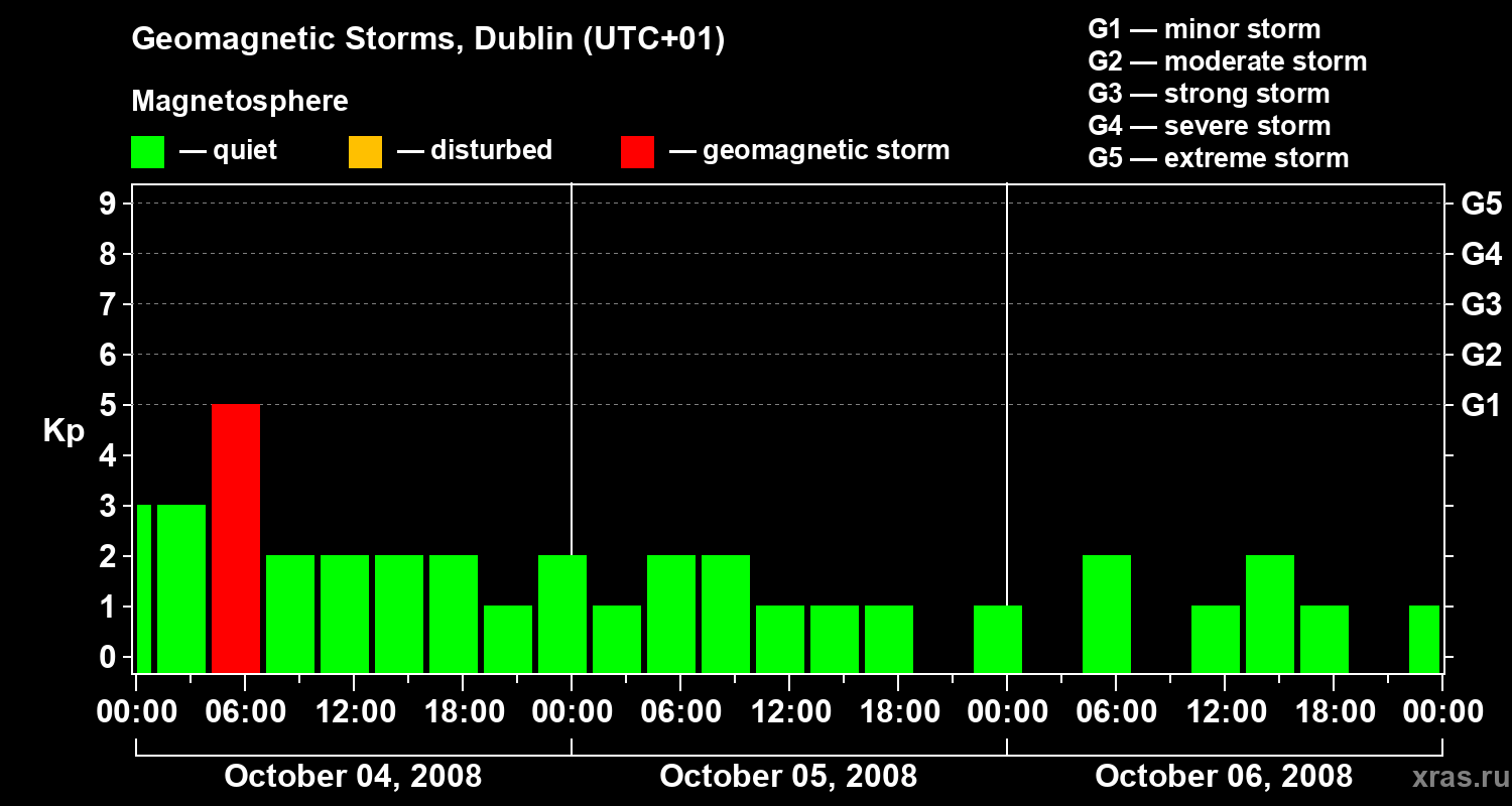 Geomagnetic storms in Dublin on Oct 06, 2008