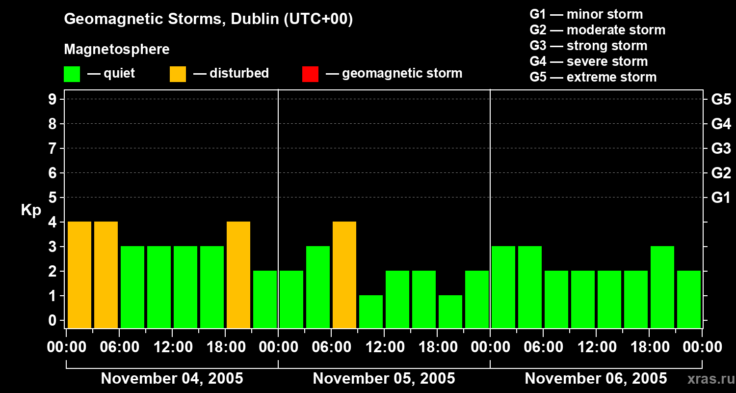 Geomagnetic storms in Dublin on Nov 06, 2005
