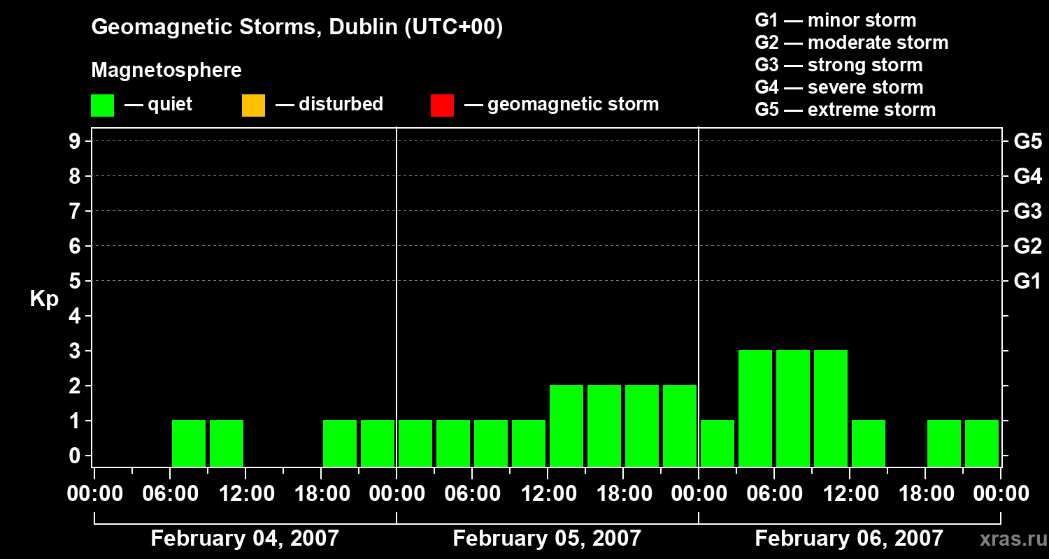 Geomagnetic storms in Dublin on Feb 06, 2007