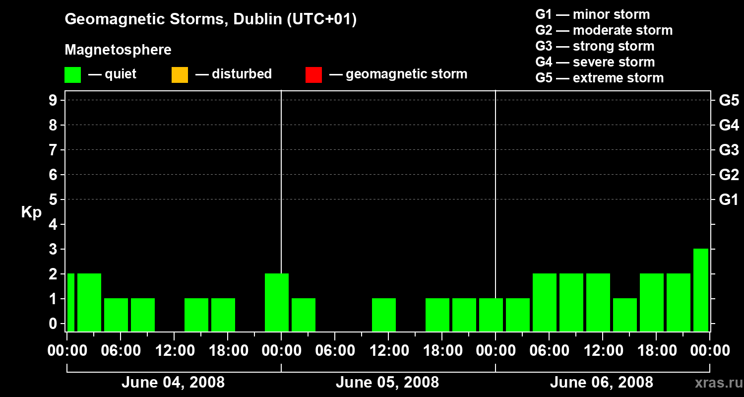 Geomagnetic storms in Dublin on Jun 06, 2008