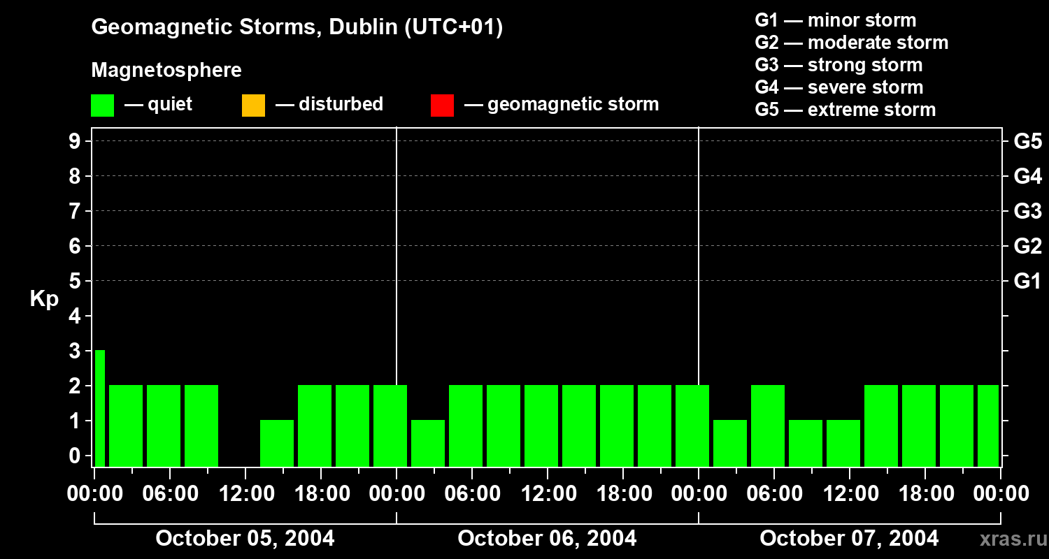 Geomagnetic storms in Dublin on Oct 07, 2004