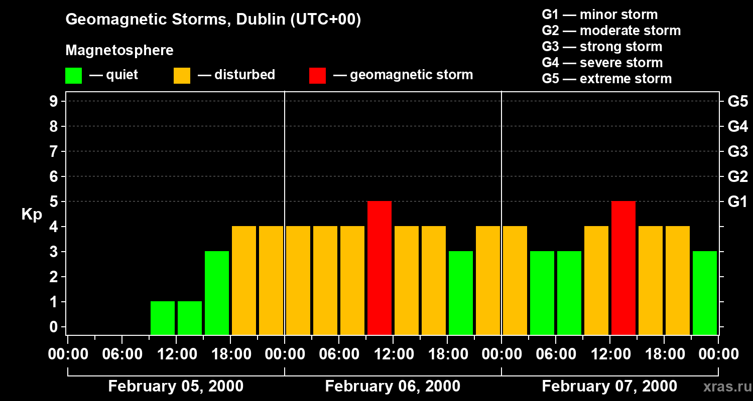 Geomagnetic storms in Dublin on Feb 07, 2000