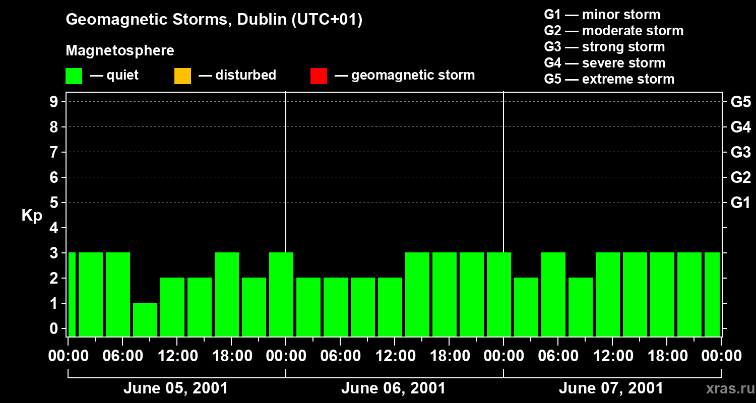 Geomagnetic storms in Dublin on Jun 07, 2001