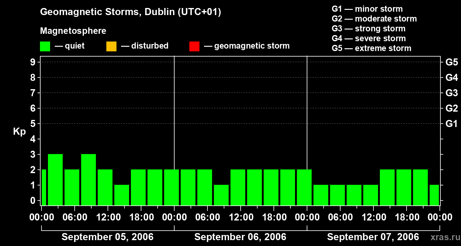 Geomagnetic storms in Dublin on Sep 07, 2006