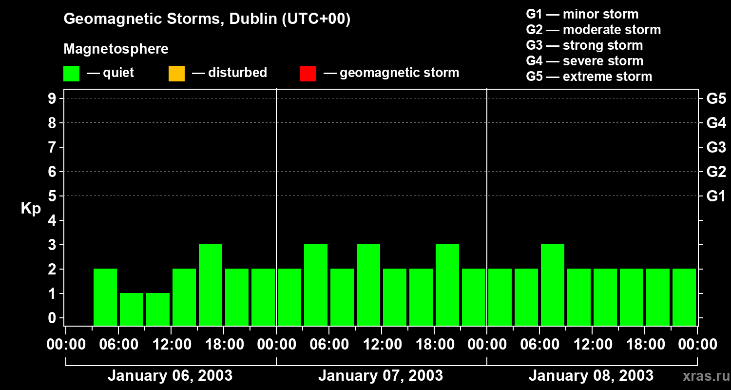 Geomagnetic storms in Dublin on Jan 08, 2003