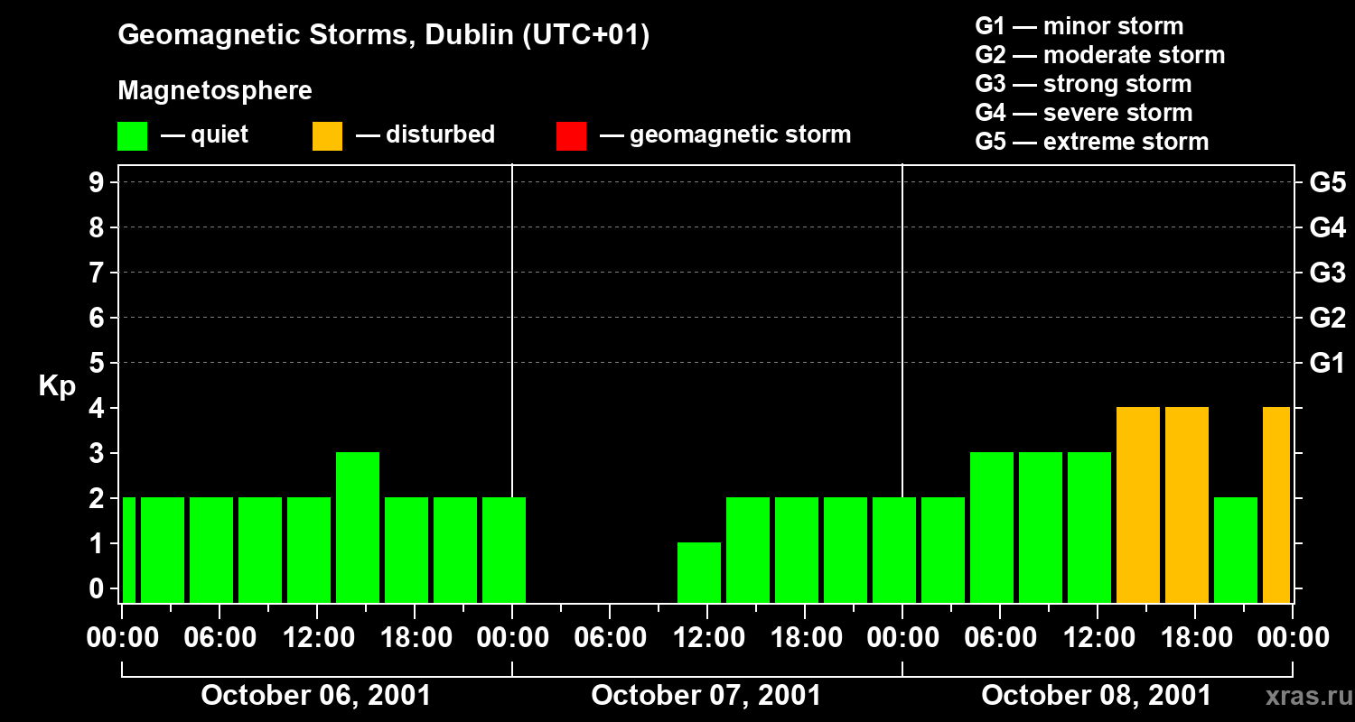 Geomagnetic storms in Dublin on Oct 08, 2001