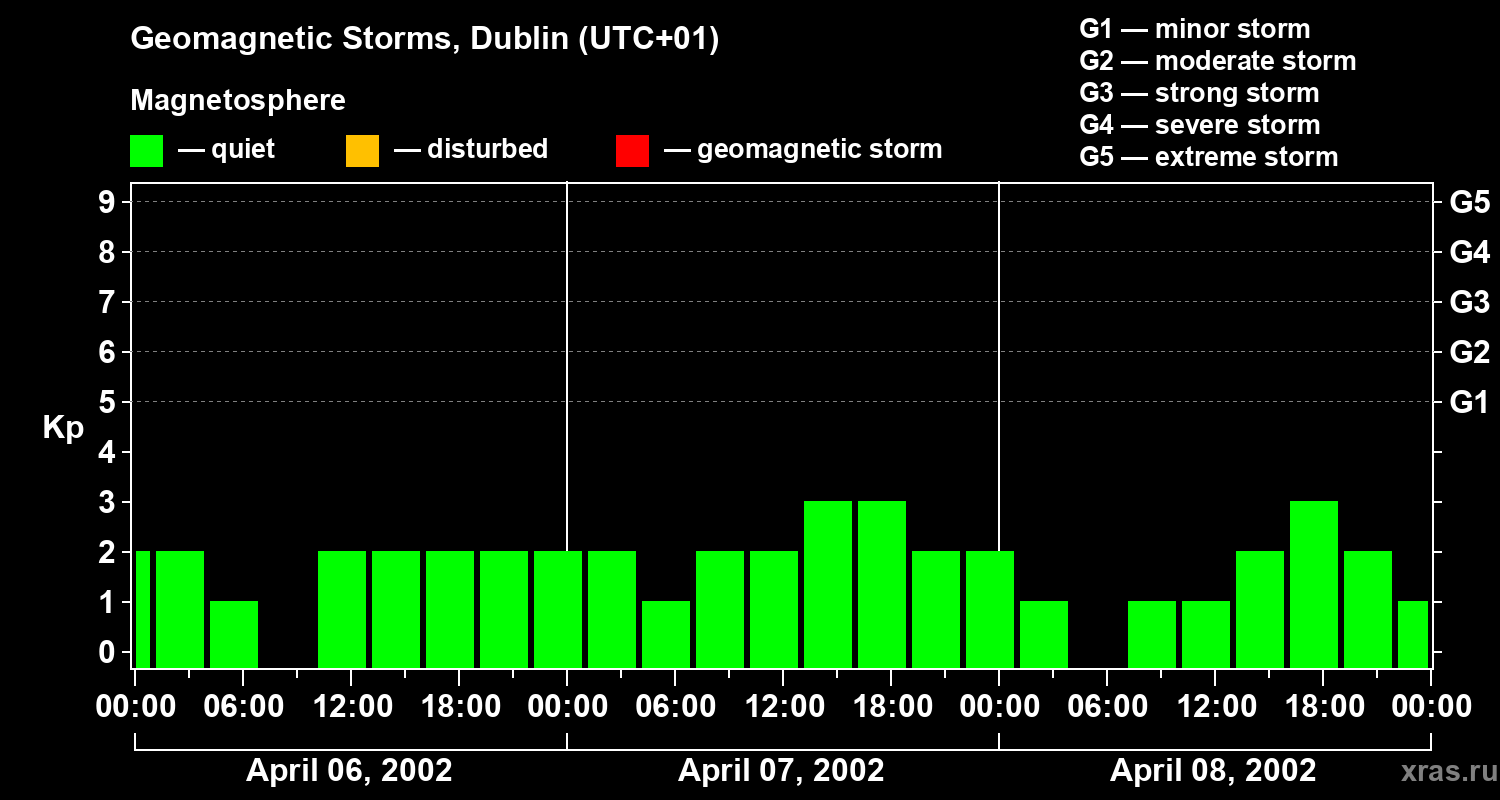 Geomagnetic storms in Dublin on Apr 08, 2002