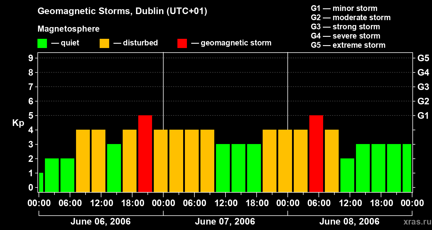 Geomagnetic storms in Dublin on Jun 08, 2006