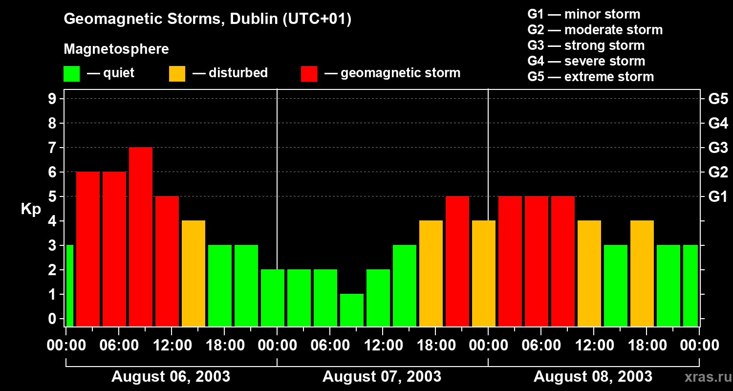 Geomagnetic storms in Dublin on Aug 08, 2003
