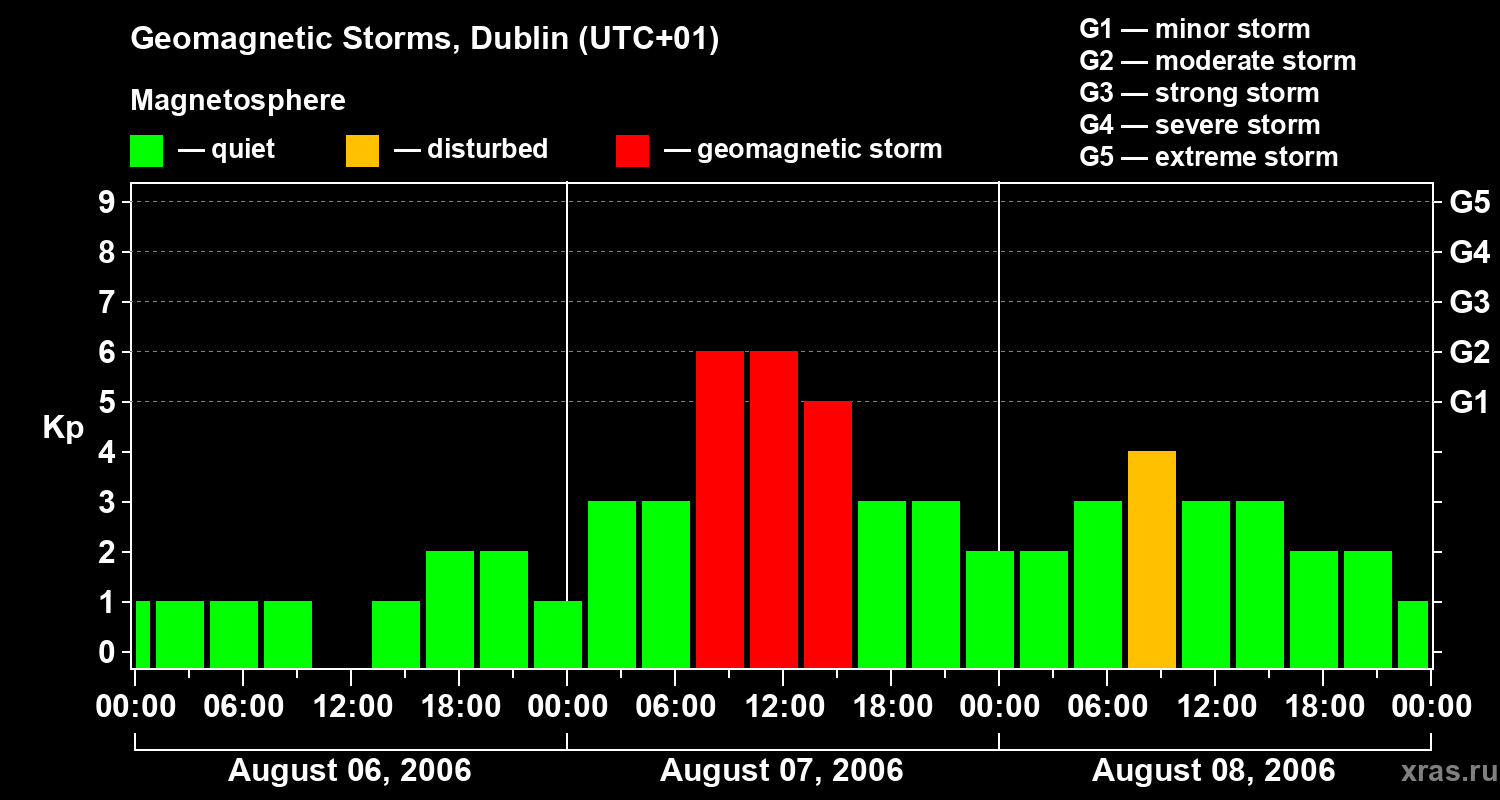Geomagnetic storms in Dublin on Aug 08, 2006