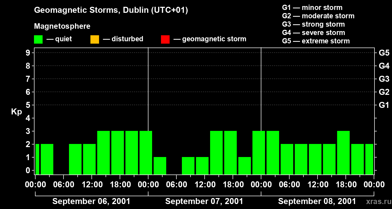 Geomagnetic storms in Dublin on Sep 08, 2001