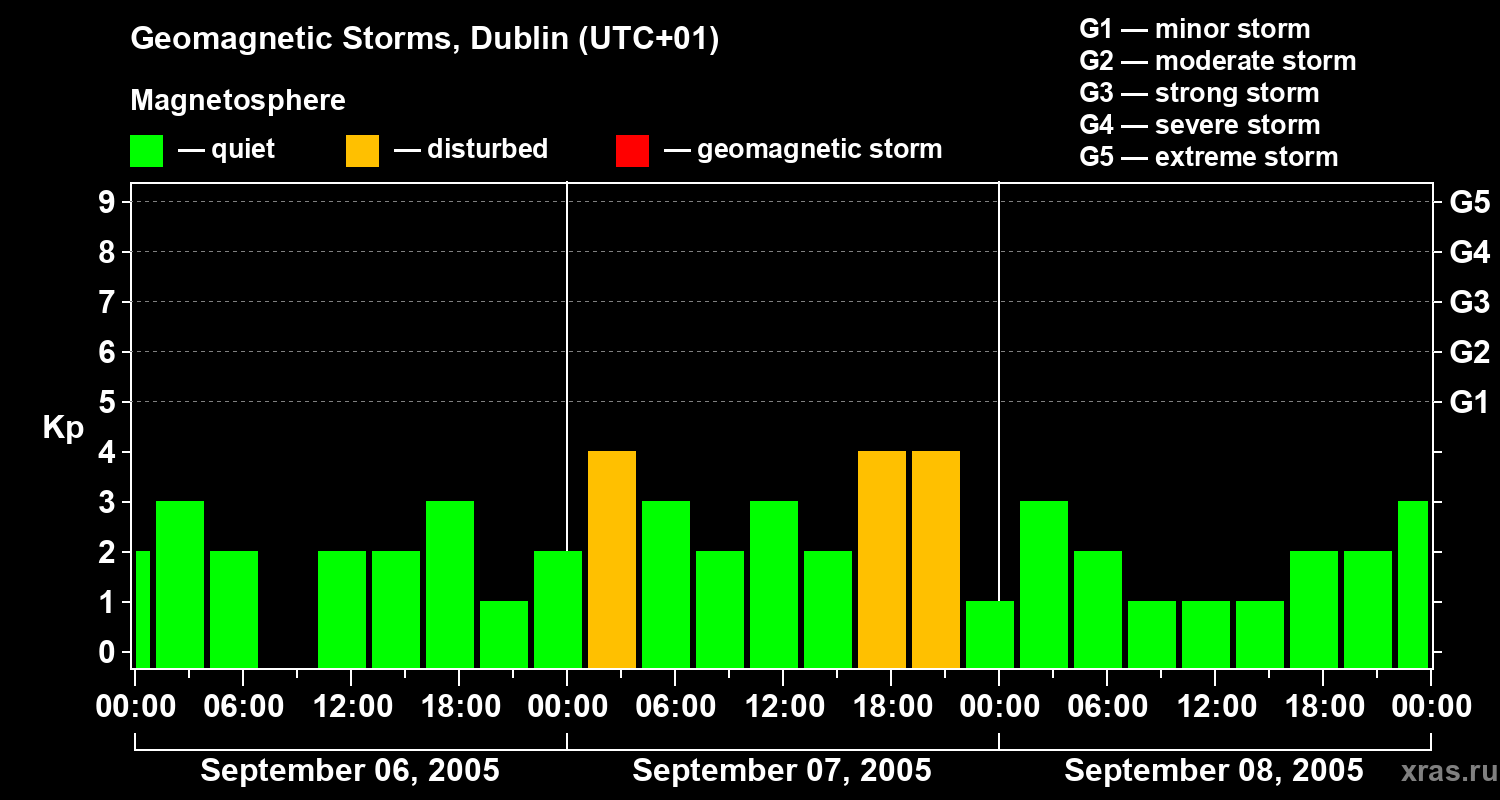 Geomagnetic storms in Dublin on Sep 08, 2005
