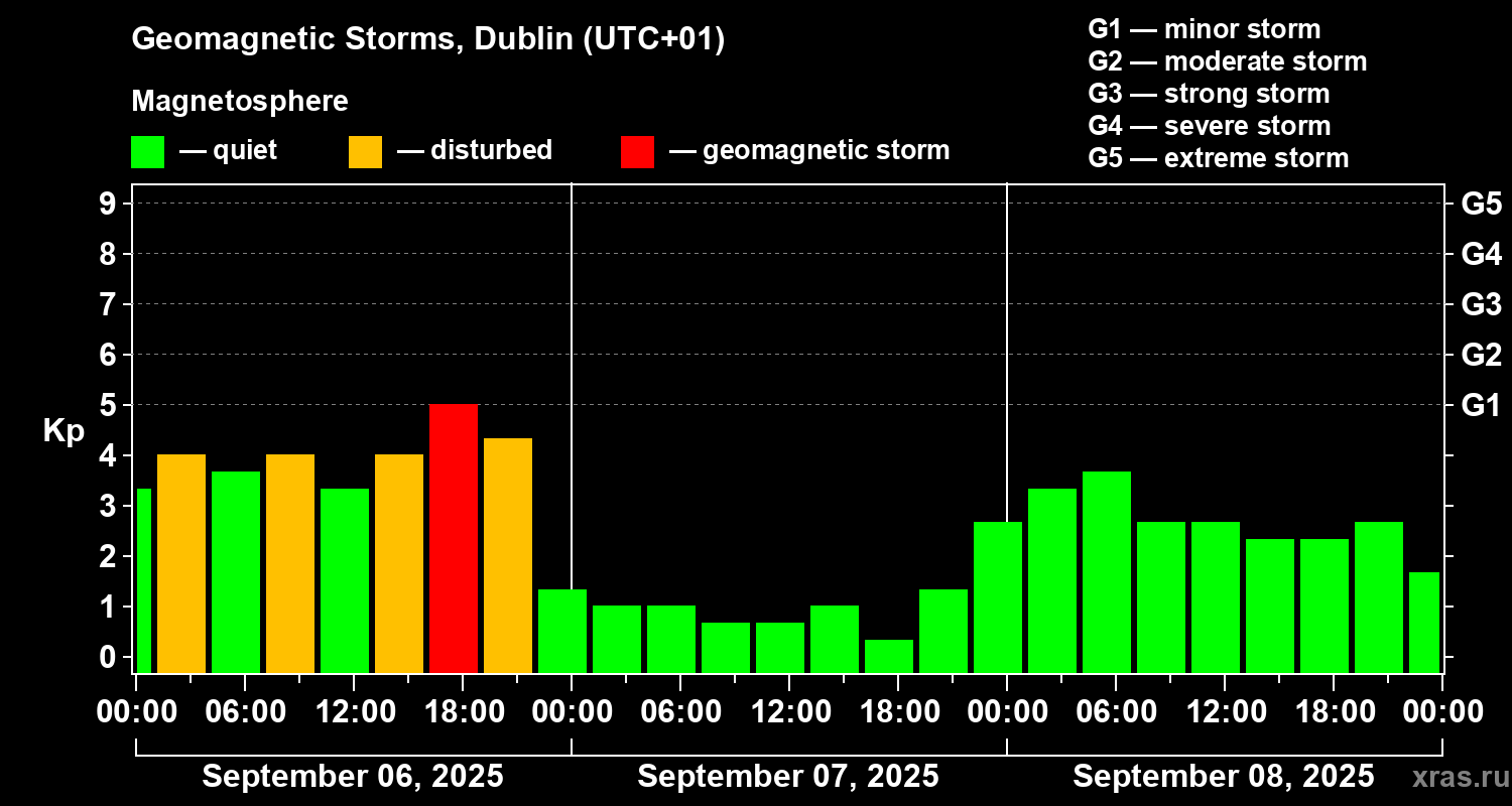 Geomagnetic storms in Dublin on Sep 08, 2025