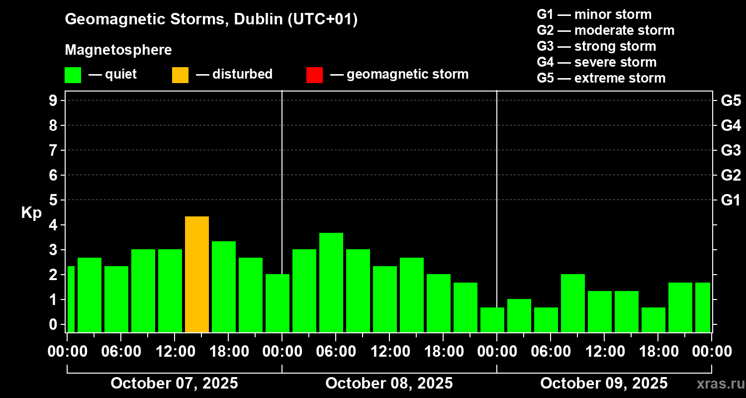 Geomagnetic storms in Dublin — Oct 09, 2025