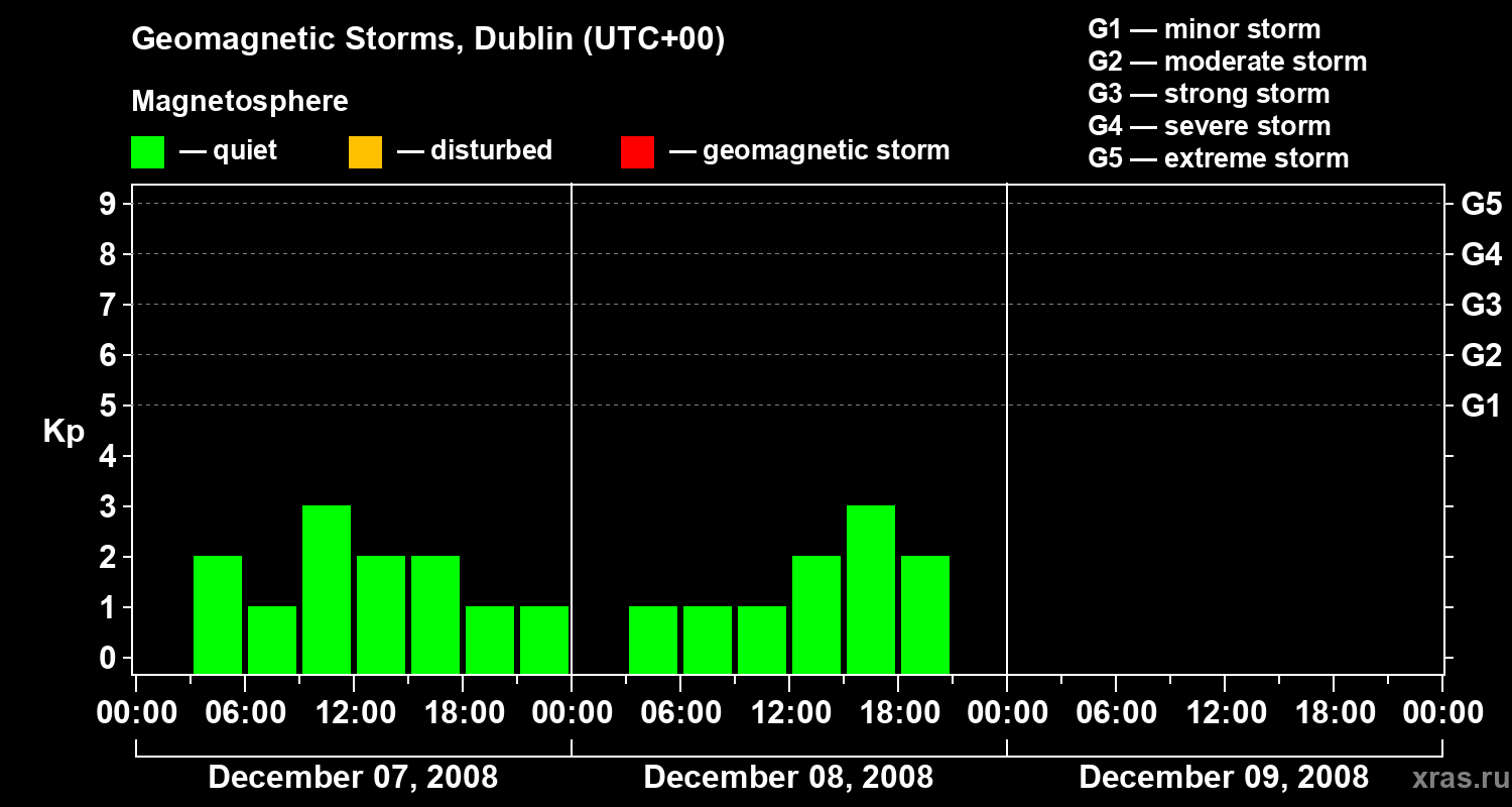 Geomagnetic storms in Dublin on Dec 09, 2008