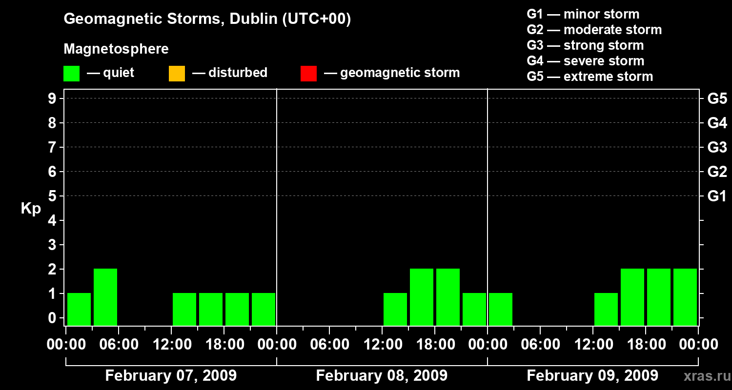 Geomagnetic storms in Dublin on Feb 09, 2009