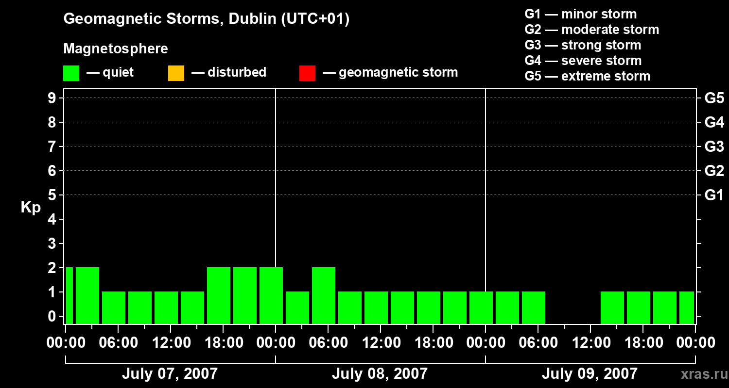 Geomagnetic storms in Dublin on Jul 09, 2007