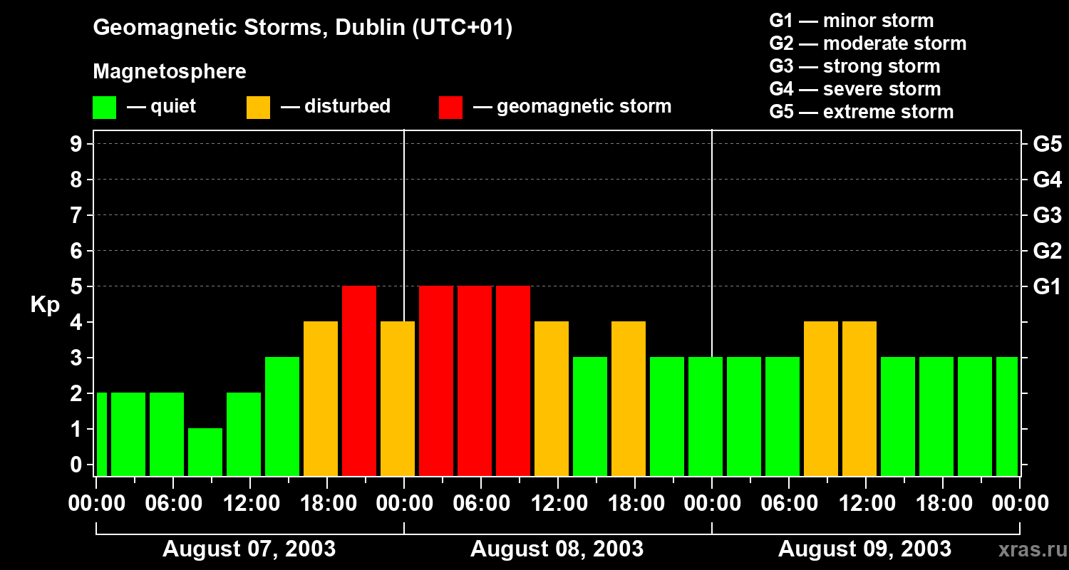 Geomagnetic storms in Dublin on Aug 09, 2003