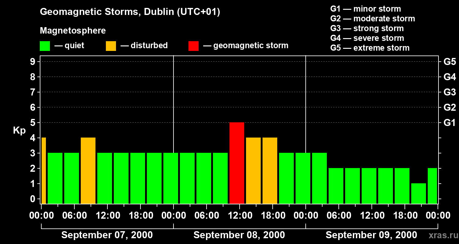Geomagnetic storms in Dublin on Sep 09, 2000
