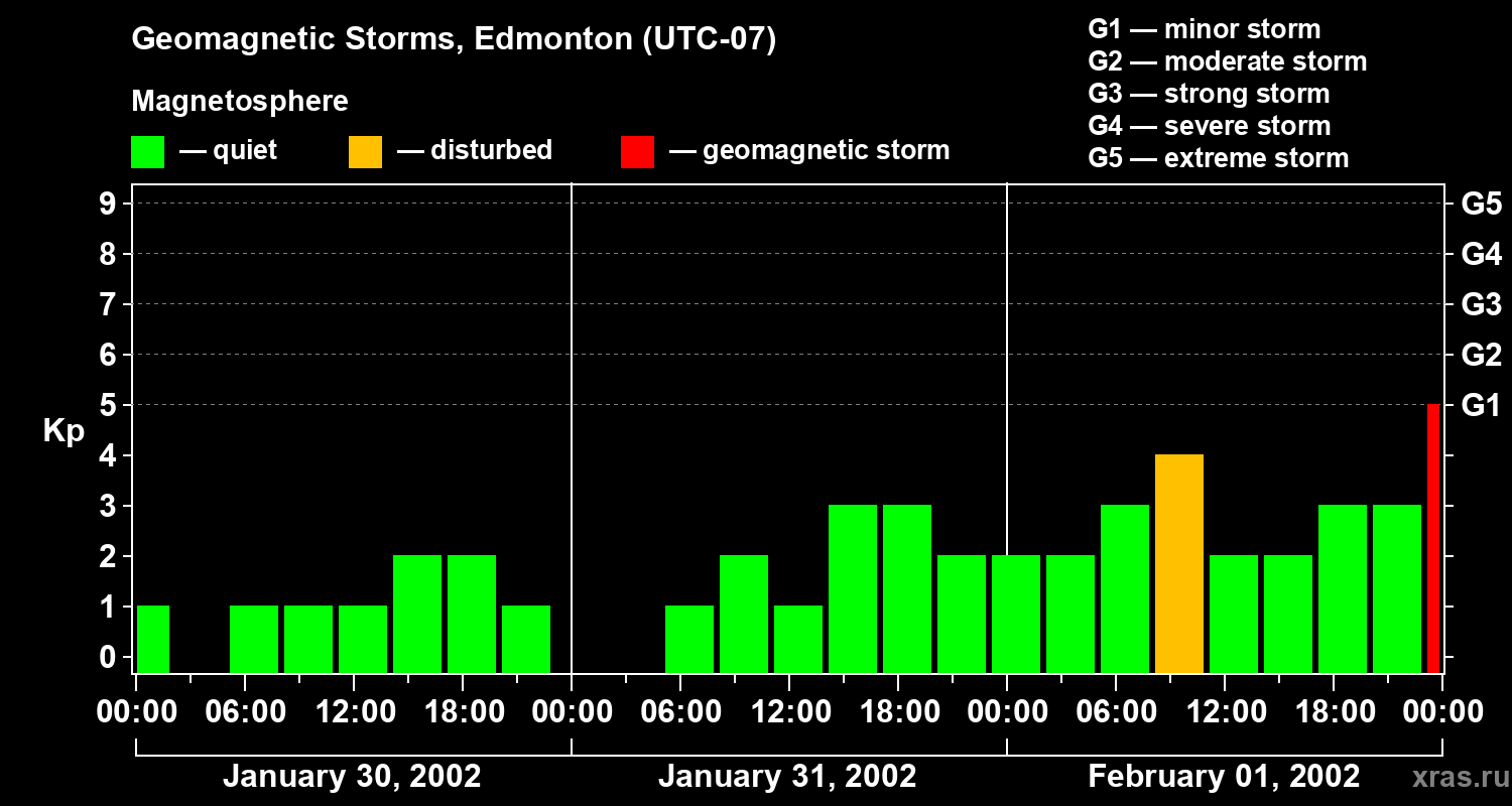 Geomagnetic storms in Edmonton on Feb 01, 2002