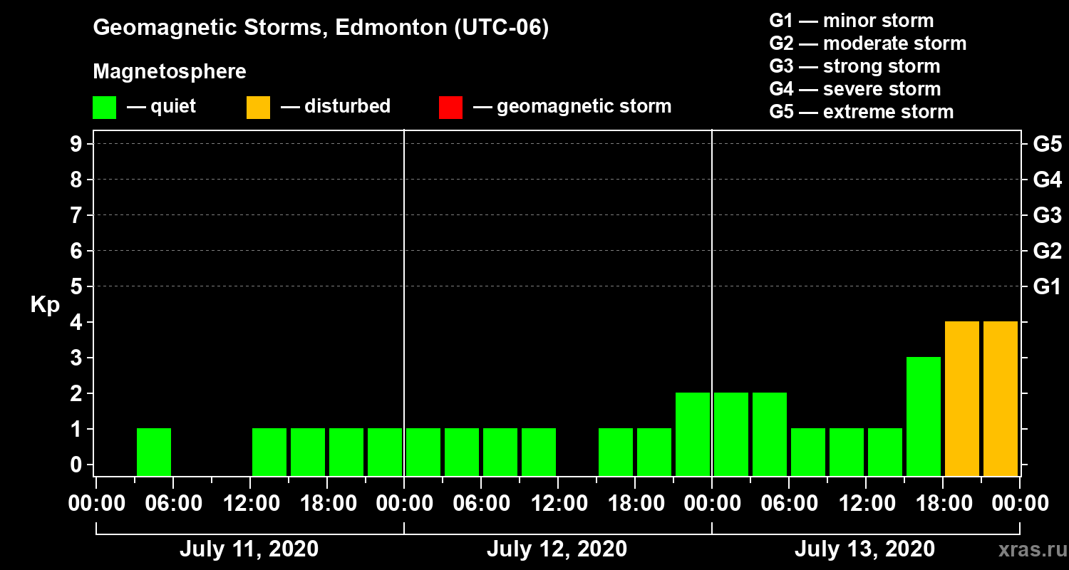 Geomagnetic storms in Edmonton on Jul 13, 2020