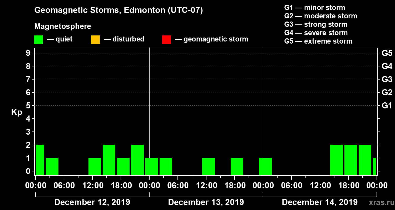 Geomagnetic storms in Edmonton in December 2019