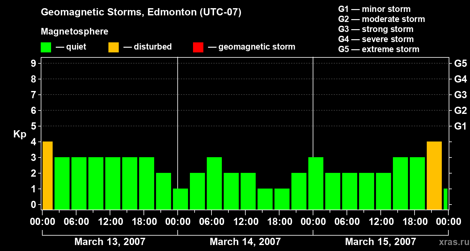 Geomagnetic storms in Edmonton in March 2007