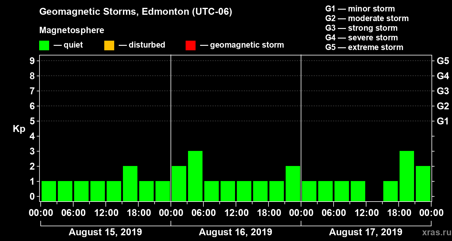 Geomagnetic storms in Edmonton on Aug 17, 2019
