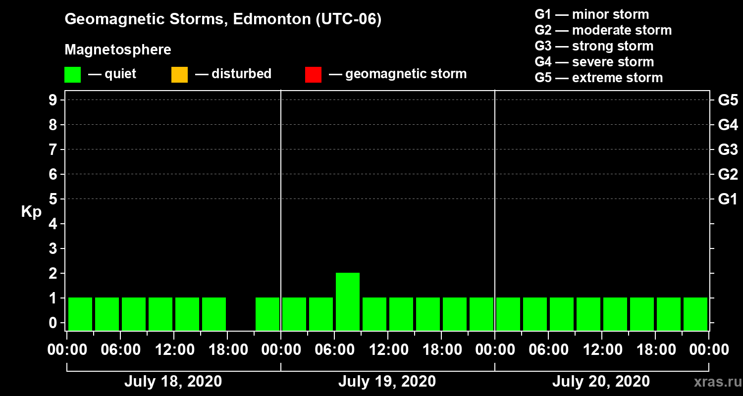 Geomagnetic storms in Edmonton on Jul 20, 2020