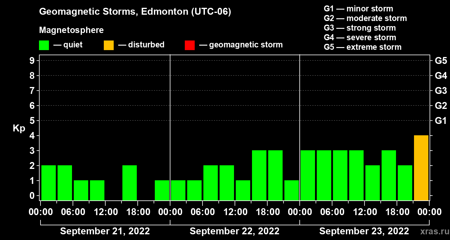 Geomagnetic storms in Edmonton on Sep 23, 2022
