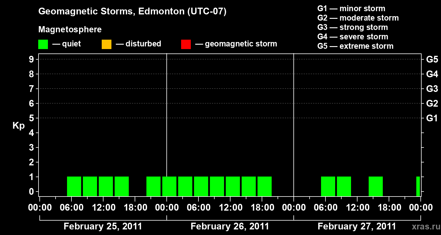 Geomagnetic storms in Edmonton — Feb 27, 2011