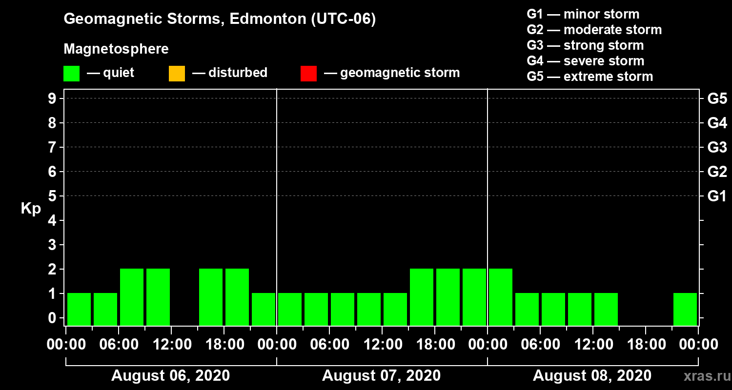 Geomagnetic storms in Edmonton on Aug 08, 2020