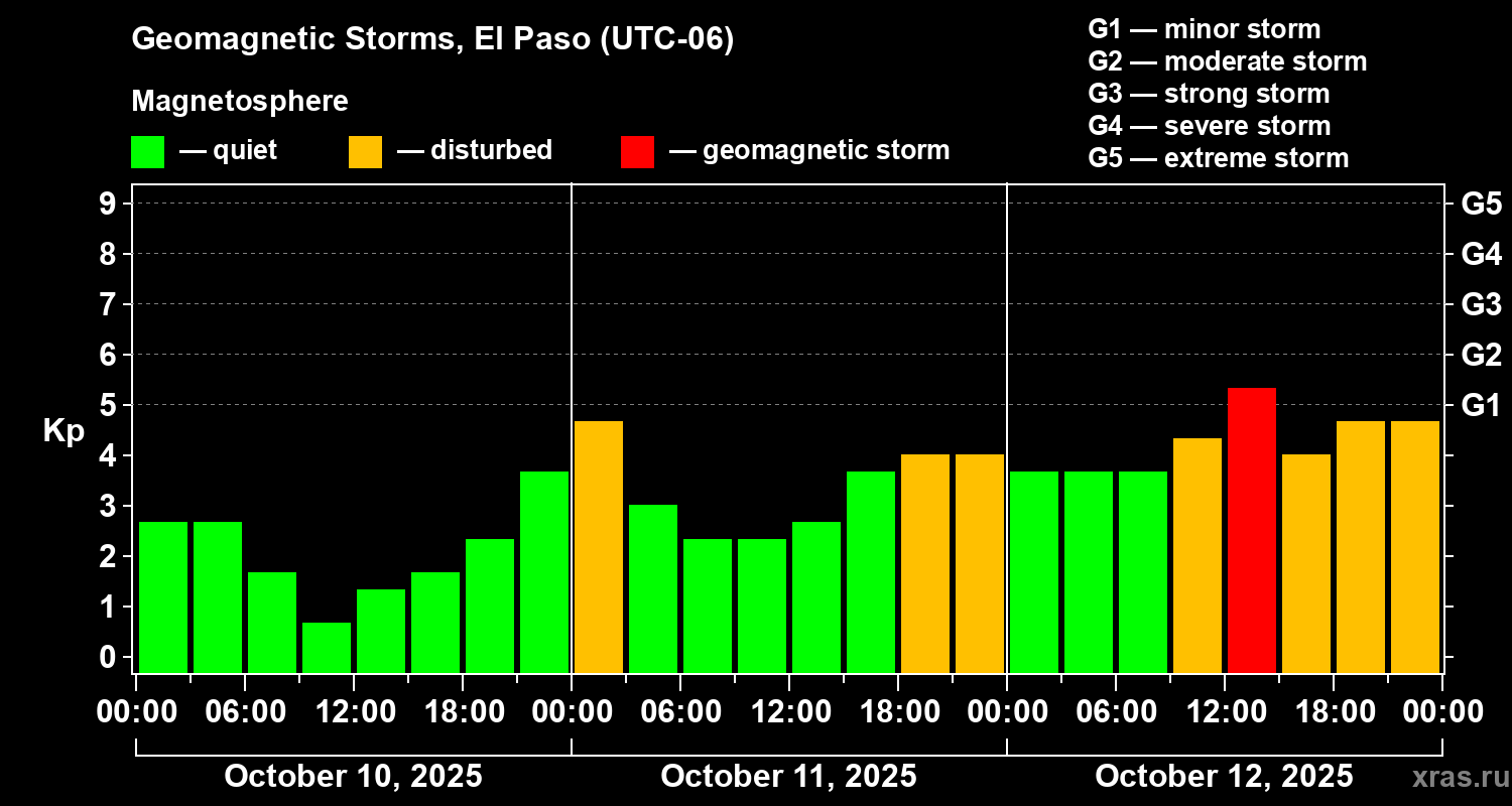 Geomagnetic storms in El Paso — Oct 12, 2025