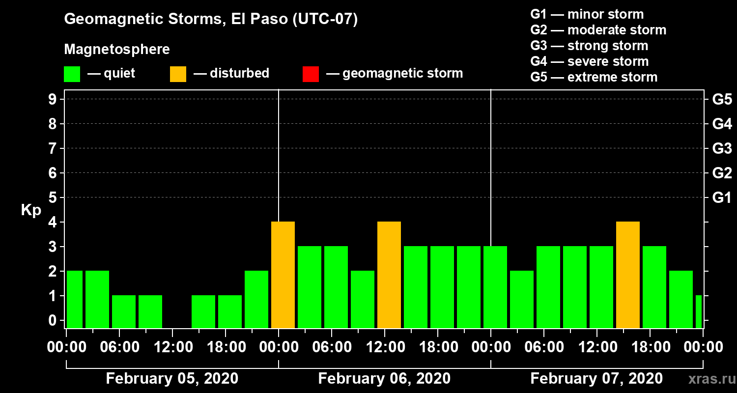 Geomagnetic storms in El Paso — Feb 07, 2020