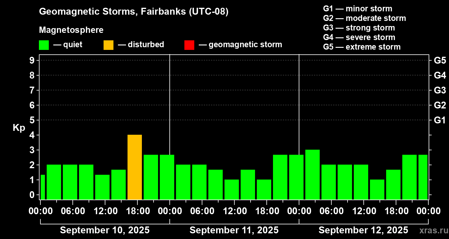 Geomagnetic storms in Fairbanks — Sep 12, 2025