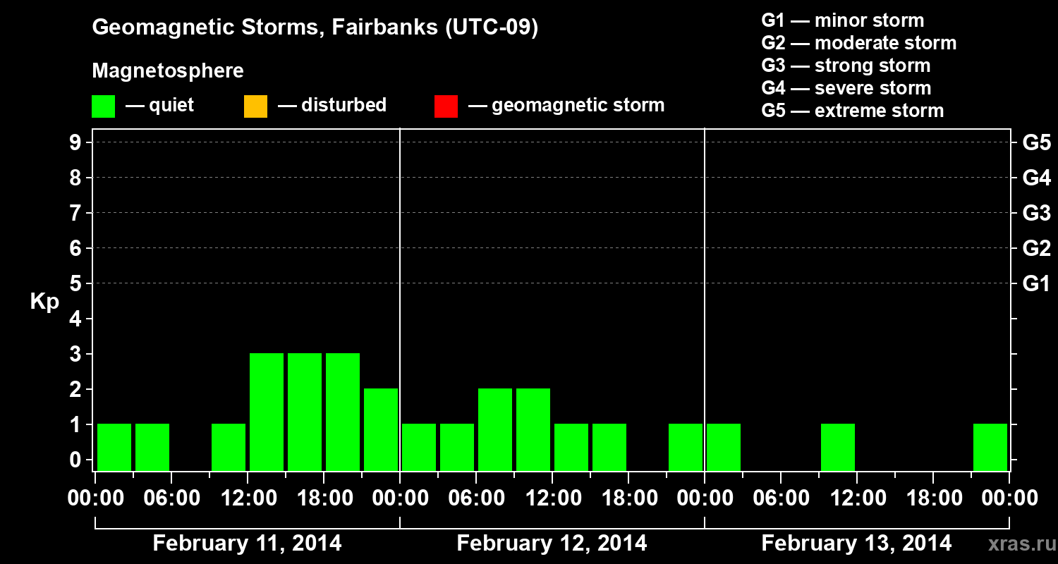 Geomagnetic storms in Fairbanks — Feb 13, 2014