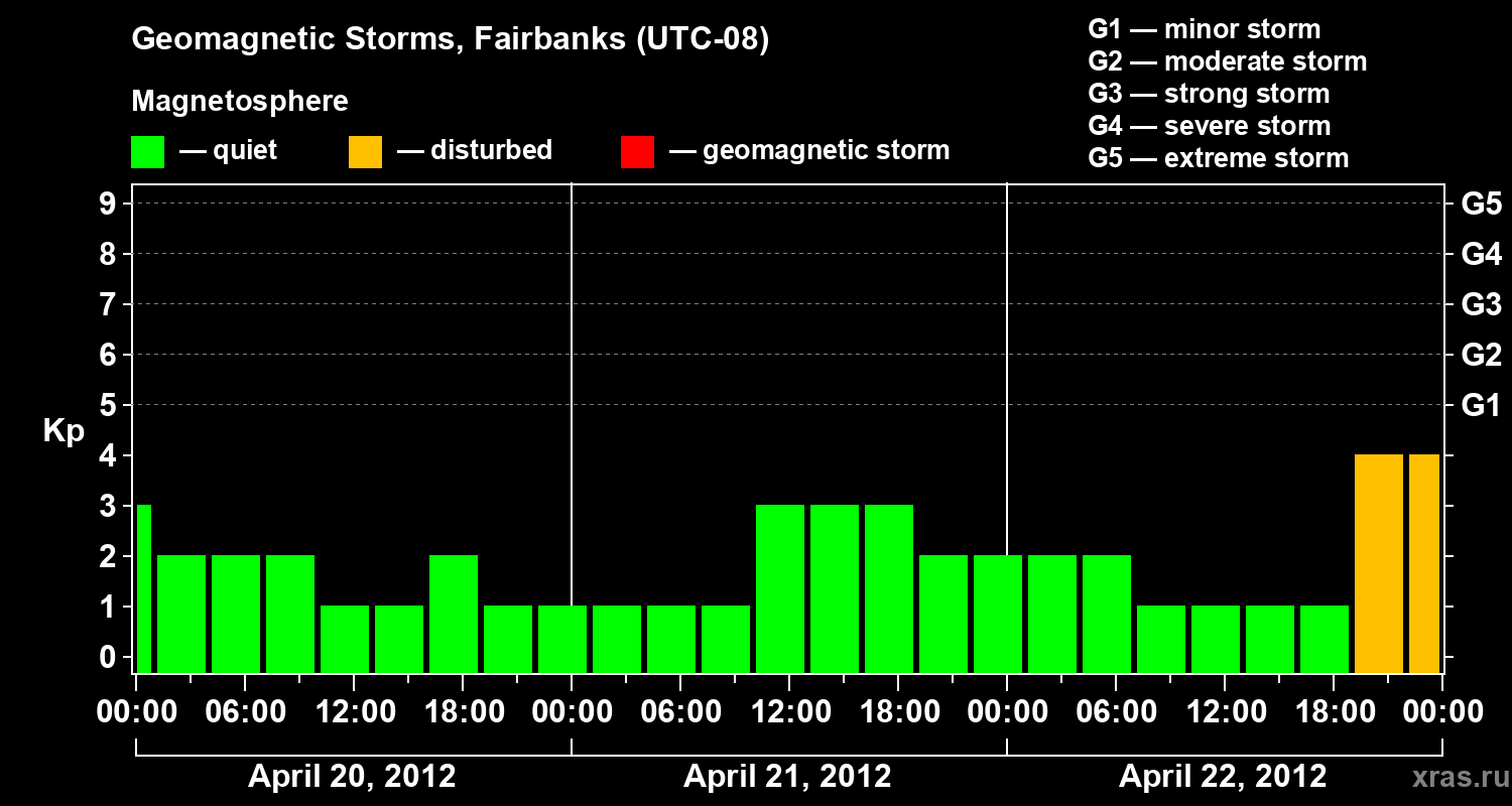 Geomagnetic storms in Fairbanks on Apr 22, 2012