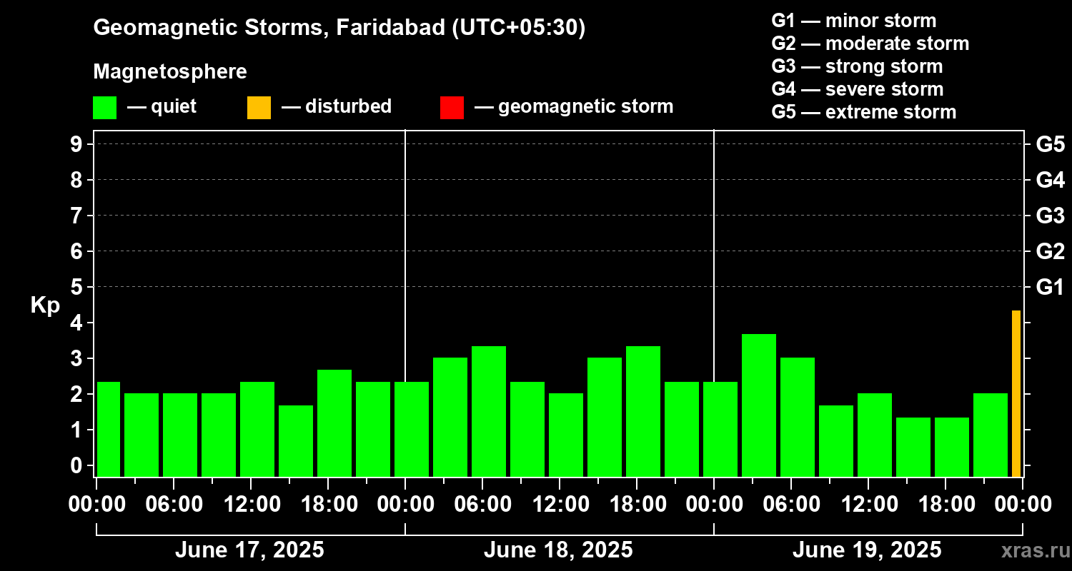 Geomagnetic storms in Faridabad on Jun 19, 2025