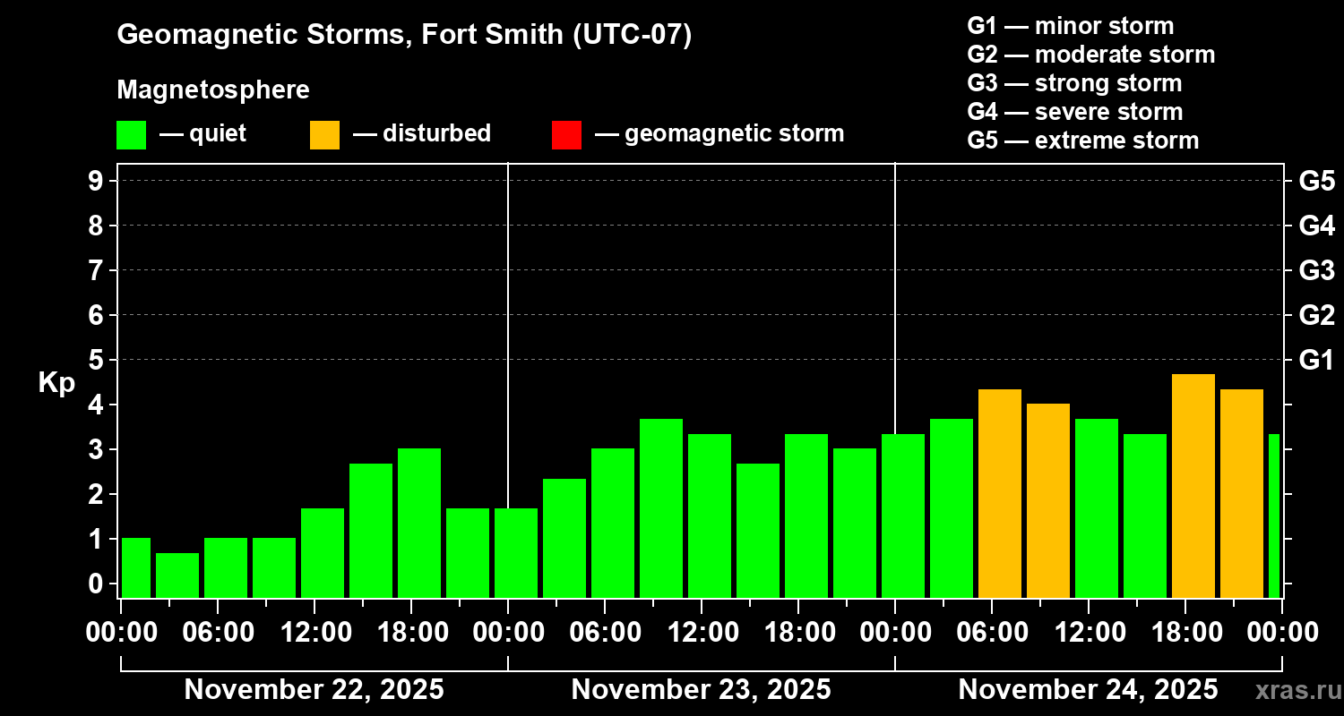Geomagnetic storms in Fort Smith — Nov 24, 2025