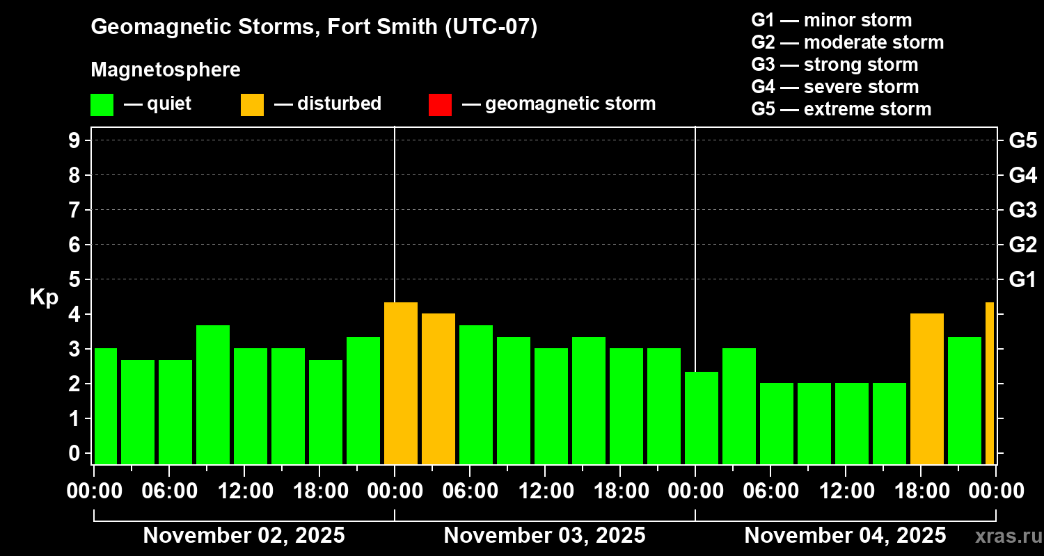 Geomagnetic storms in Fort Smith — Nov 04, 2025