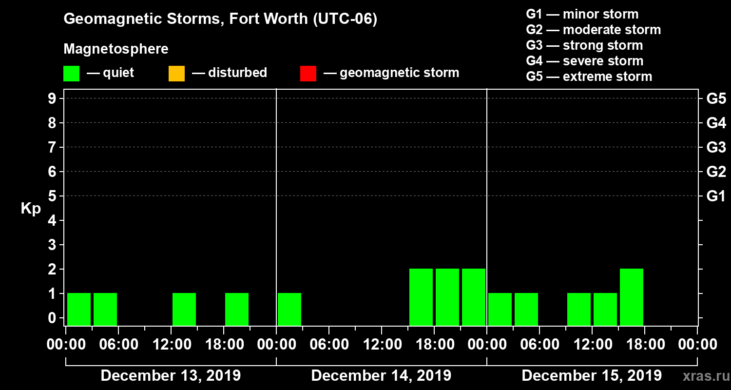 Geomagnetic storms in Fort Worth in December 2019